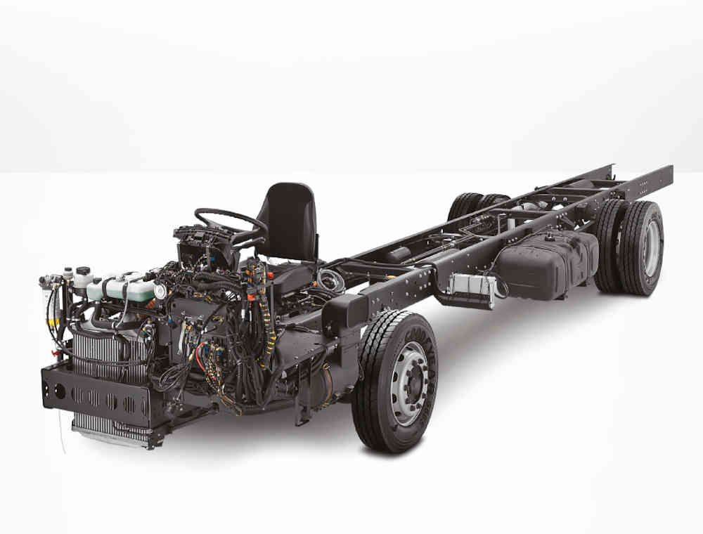Para la industria de la construcción, este chasis sirve como plataforma para grúas hidráulicas, plataformas elevadoras y maquinaria especializada. Su capacidad de carga y estructura resistente permiten soportar equipos pesados y operar en condiciones de obra demandantes.